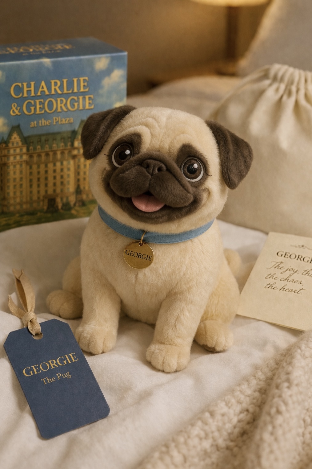 A wide-eyed pug with an even wider smile and zero concept of personal space. Georgie charges into every situation tongue-first and believes that enthusiasm is a perfectly valid strategy.