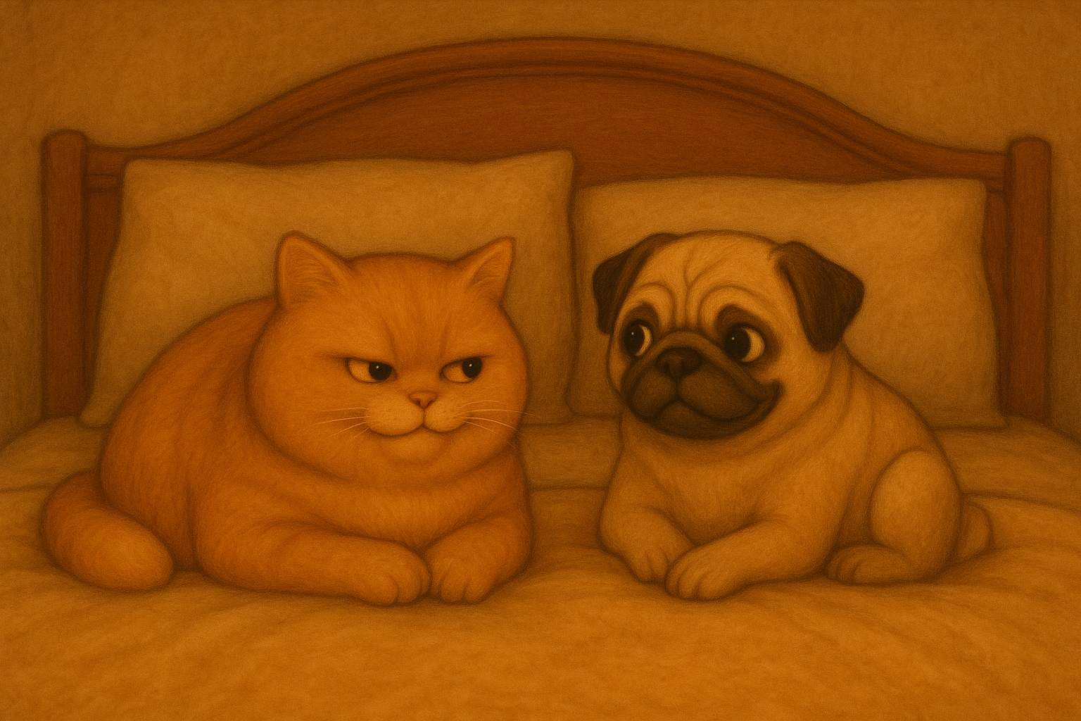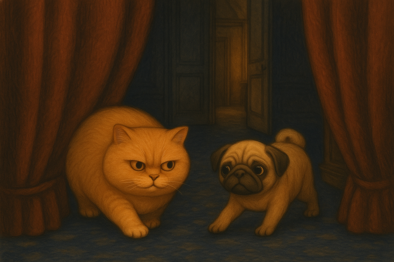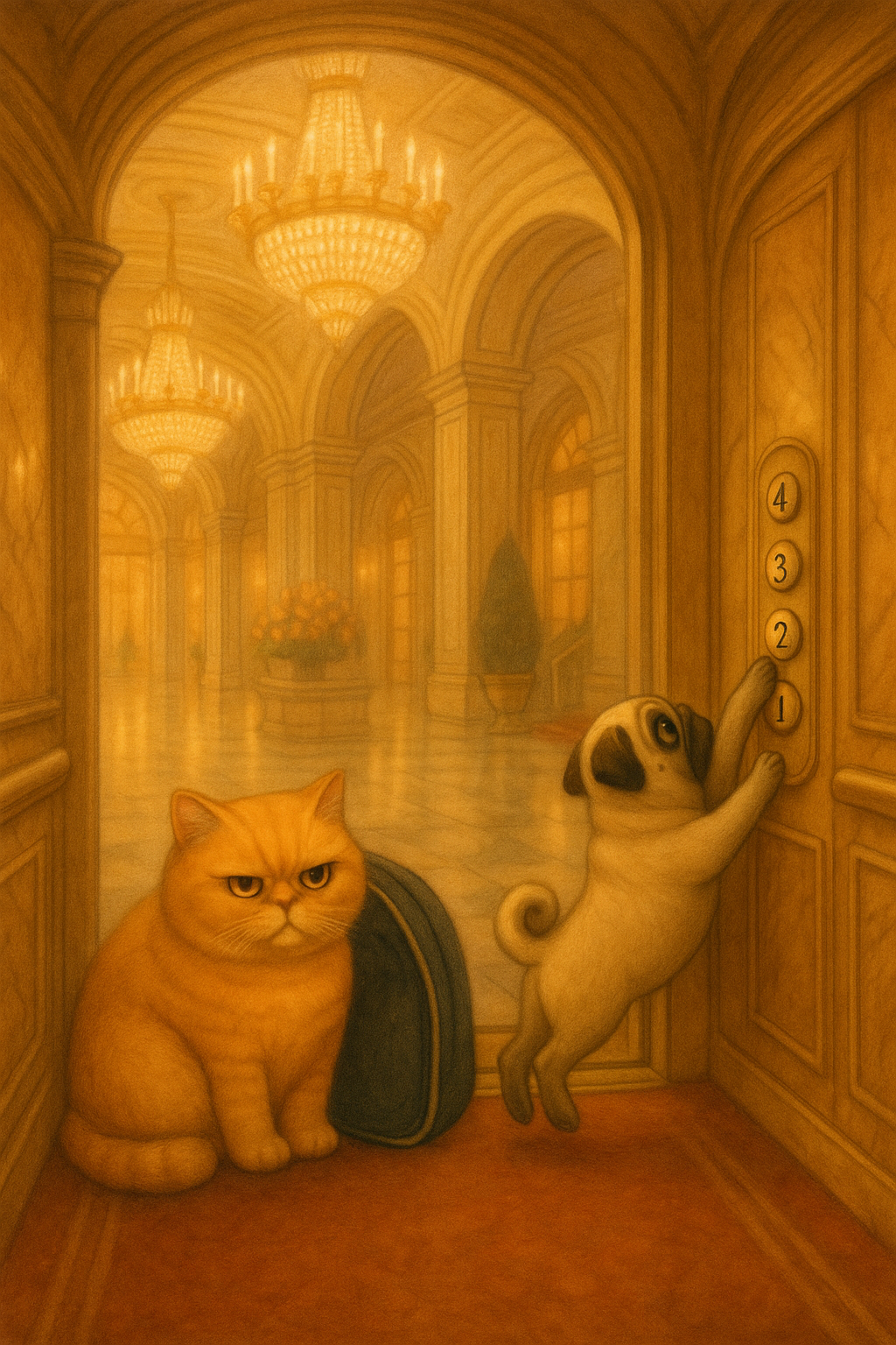 A grumpy cat and a joyful pug explore the world’s greatest landmarks.